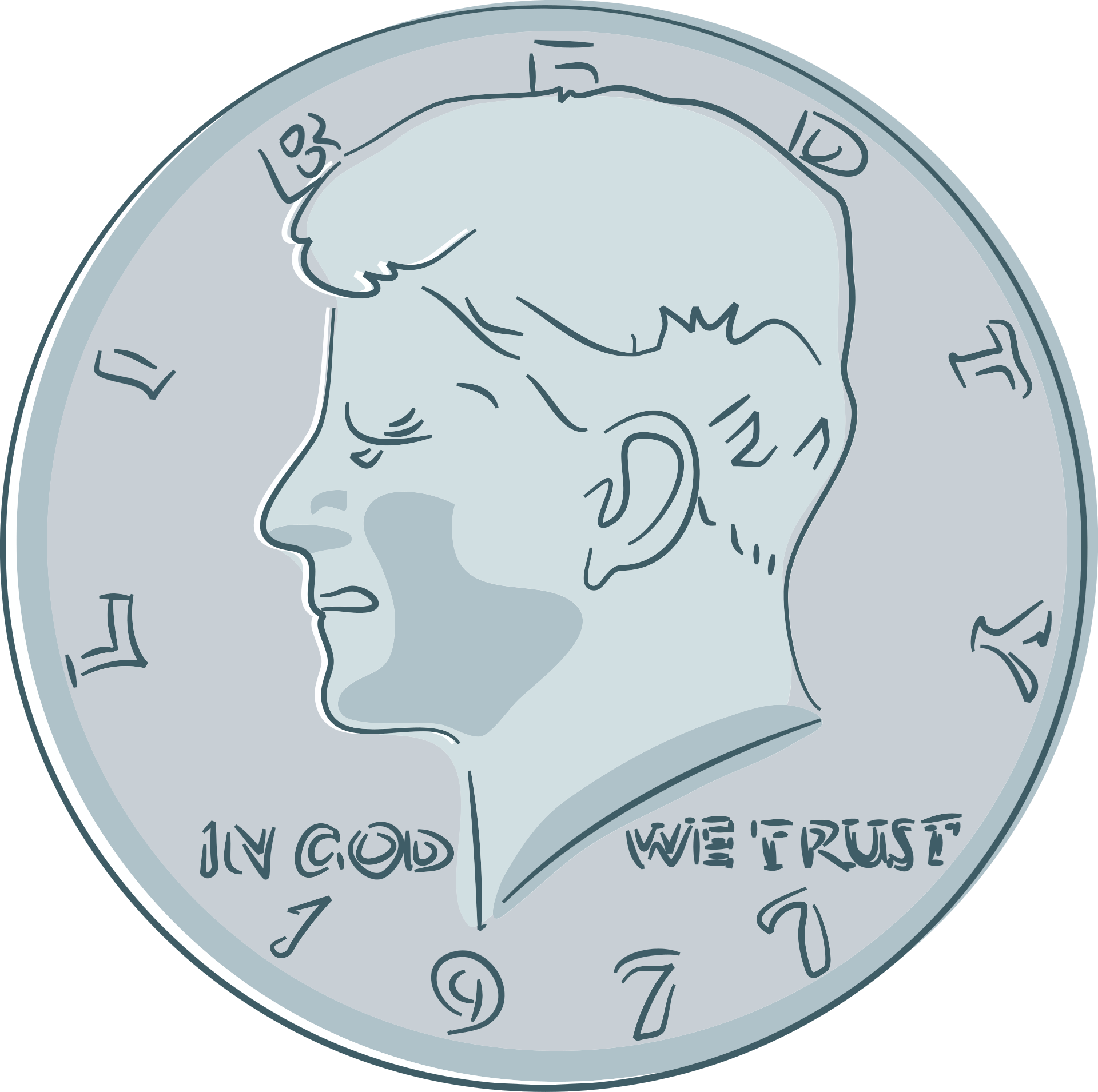 This features a coin with the phrase "In God We Trust" written on it. The coin is round and has a man's face on it, along with the number 7 on the bottom right corner of the coin. The man appears to be looking upwards, possibly in surprise or contemplation. The coin itself seems to be made of metal, giving it a shiny appearance.