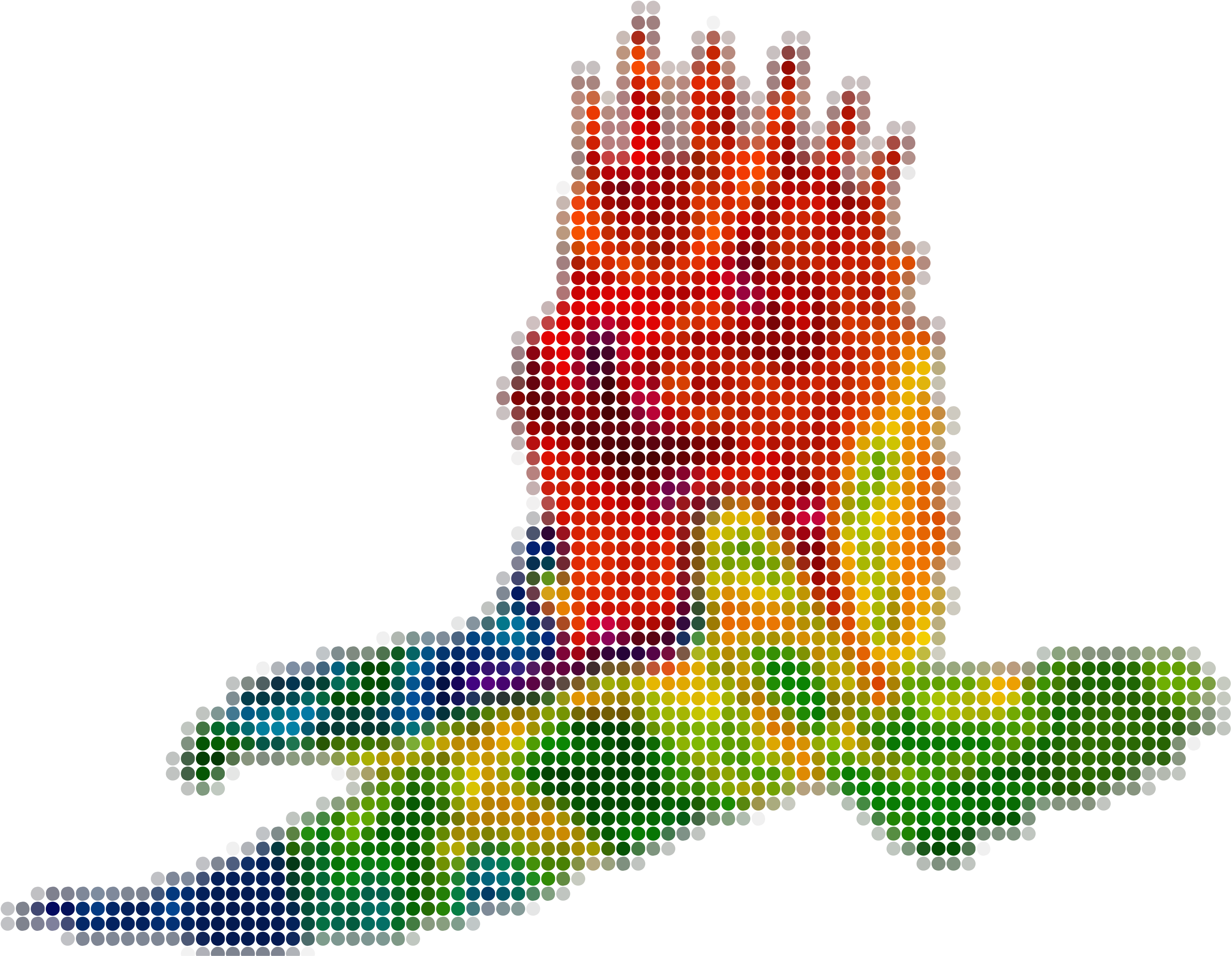 This features a vibrant and colorful flower, which is composed of various dots. These dots are arranged in such a way that they create the illusion of a flower with petals and leaves. The flower appears to be made up of different colors, including red, green, yellow, blue, and purple. The combination of these colors creates an eye-catching and visually appealing display. This artistic representation of a flower is reminiscent of the famous artist M. C. Escher's work, which often features intricate patterns created from simple geometric shapes.