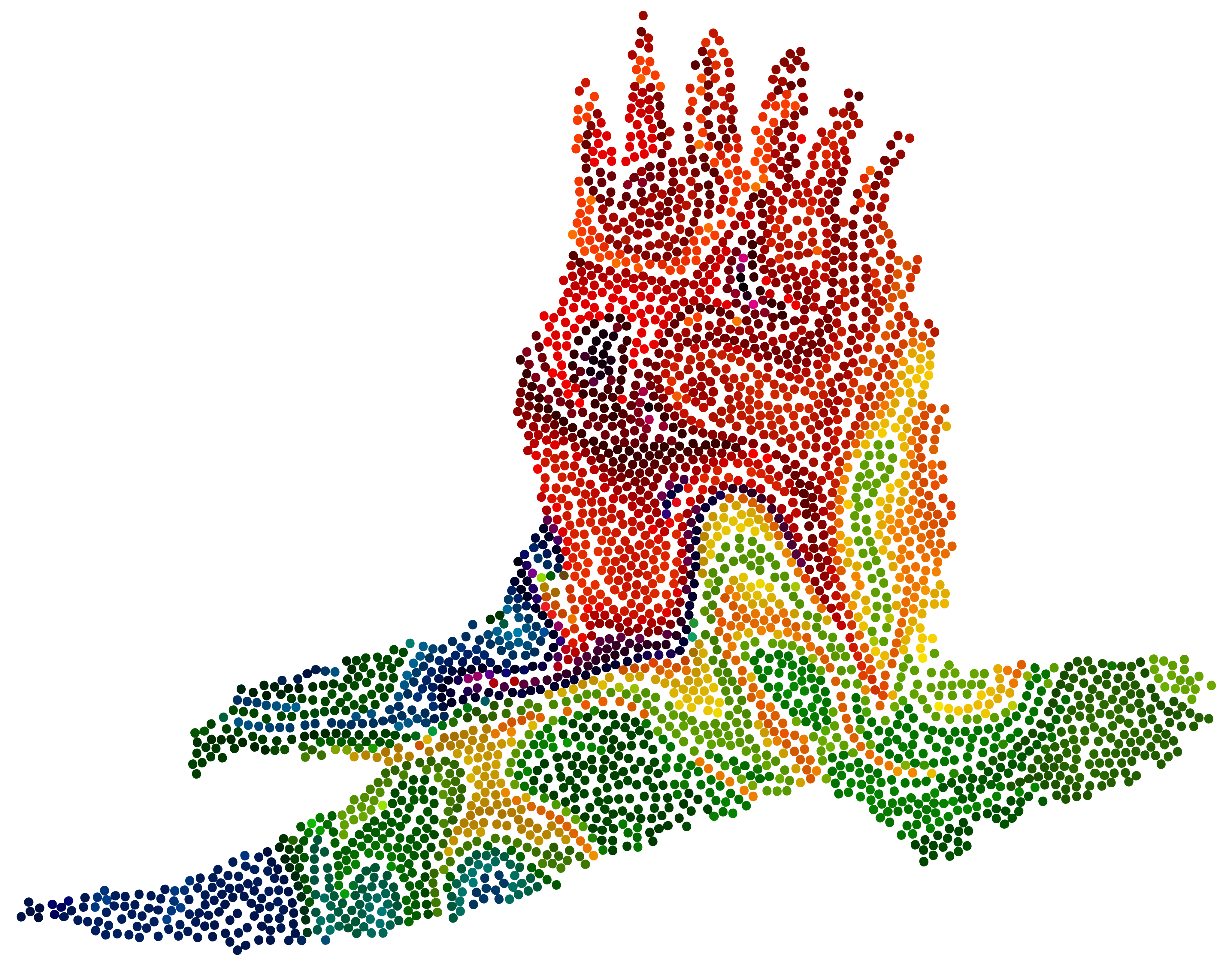 This features a unique and colorful design created from an array of dots. This artistic piece is reminiscent of a bird, possibly a peacock or an eagle, with its vibrant colors and intricate patterns. The dots are scattered throughout the entire composition, creating a visually striking effect that draws attention to the design's details. The close-up view of this artwork highlights the intricacy and beauty of the pattern created by the dots, making it an impressive piece of art.