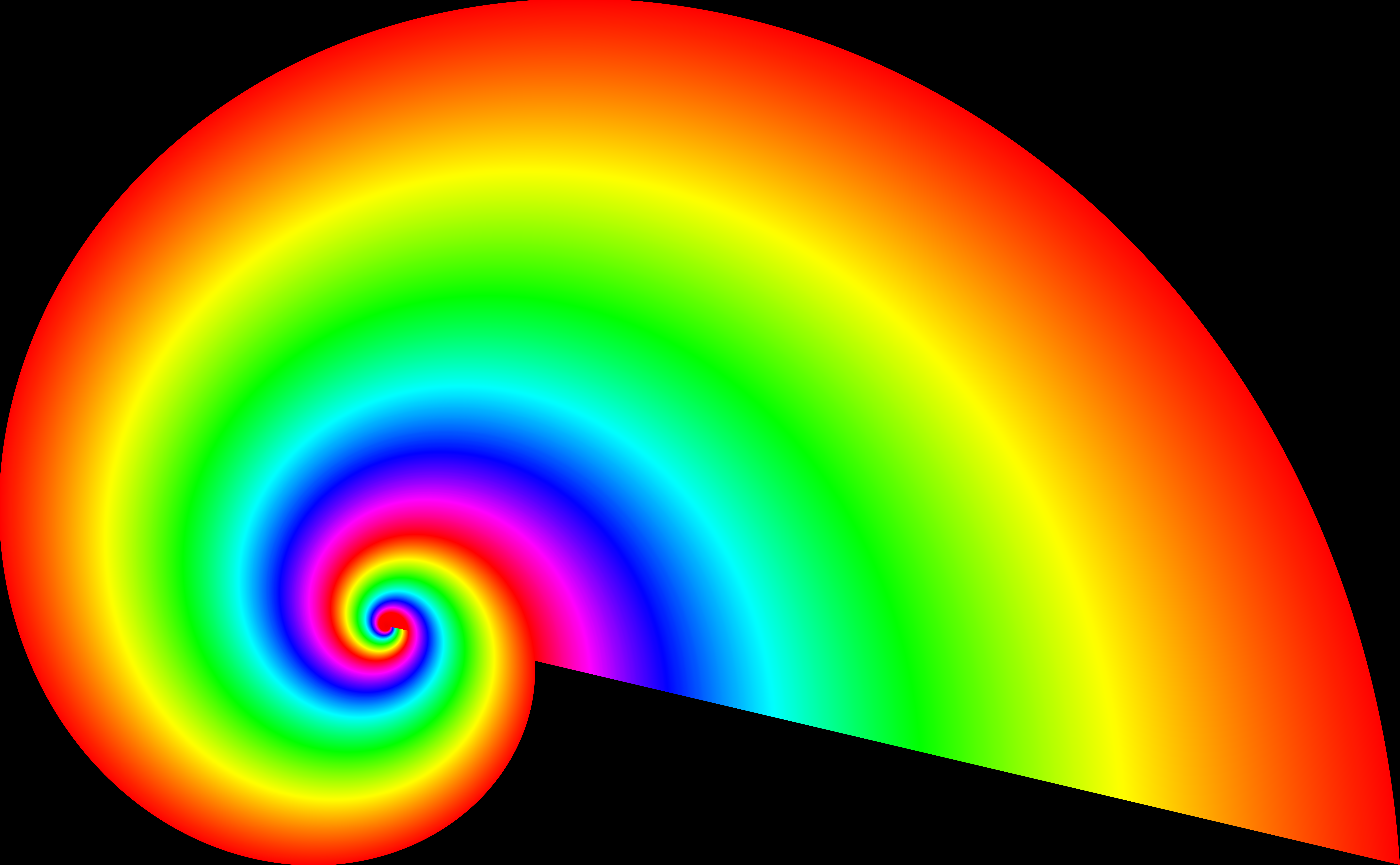 This features a spiral that is colorful and visually appealing. It appears to be a rainbow-colored spiral, with each section of the spiral having a different hue. This creates an interesting visual effect as it seems to be a combination of a spiral and a rainbow. The spiral's design may also be based on the golden ratio, which is known for its aesthetic appeal in various forms of art and architecture. Overall, this image presents a unique and eye-catching display that captures attention with its vibrant colors and intricate pattern.