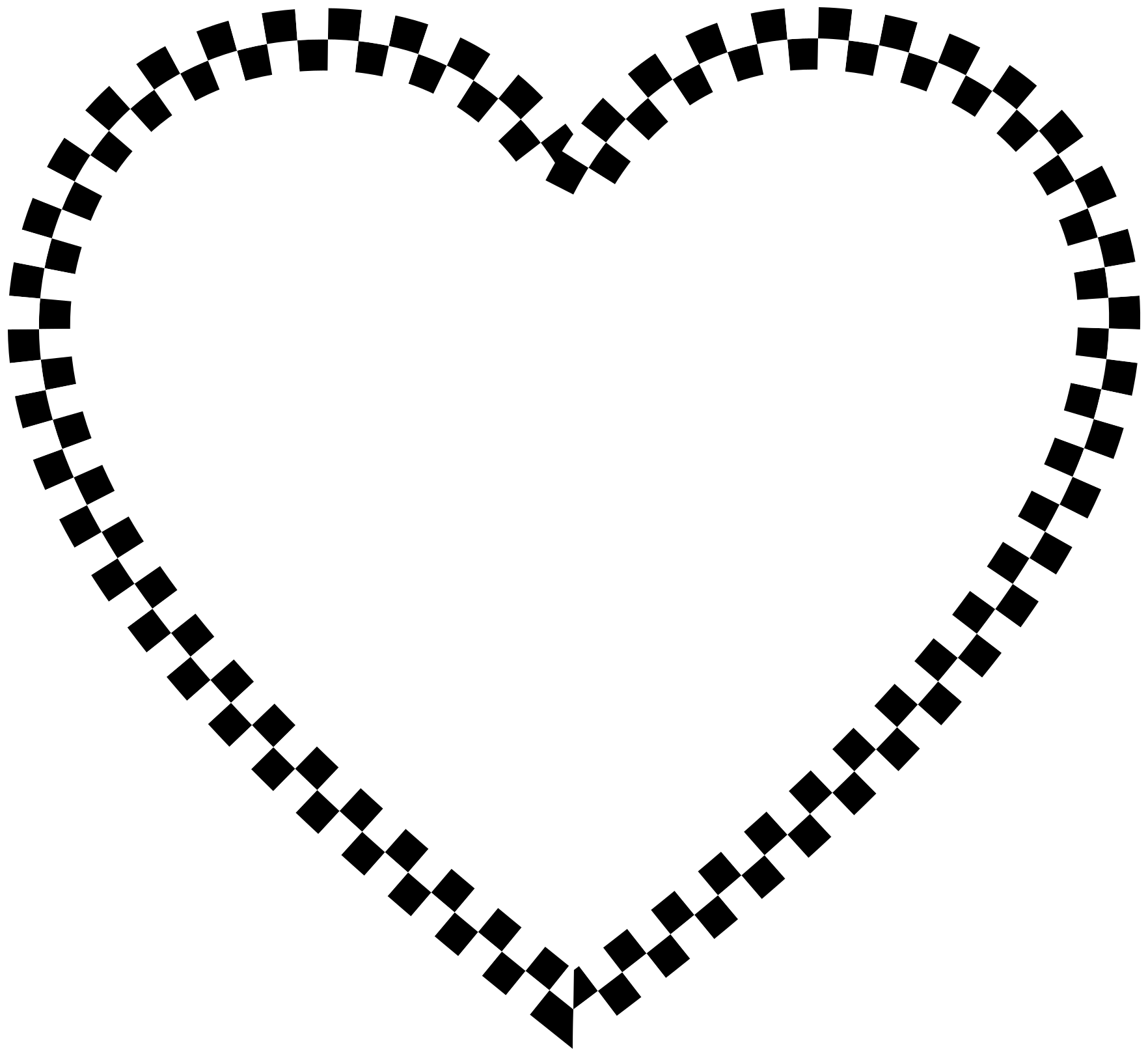 This features a heart-shaped design with black and white squares. The heart is filled with black squares, creating a contrasting pattern against the white background. This unique design gives the heart shape an interesting and eye-catching appearance. The heart's shape is clearly defined by its borders, making it stand out even more in the image.
