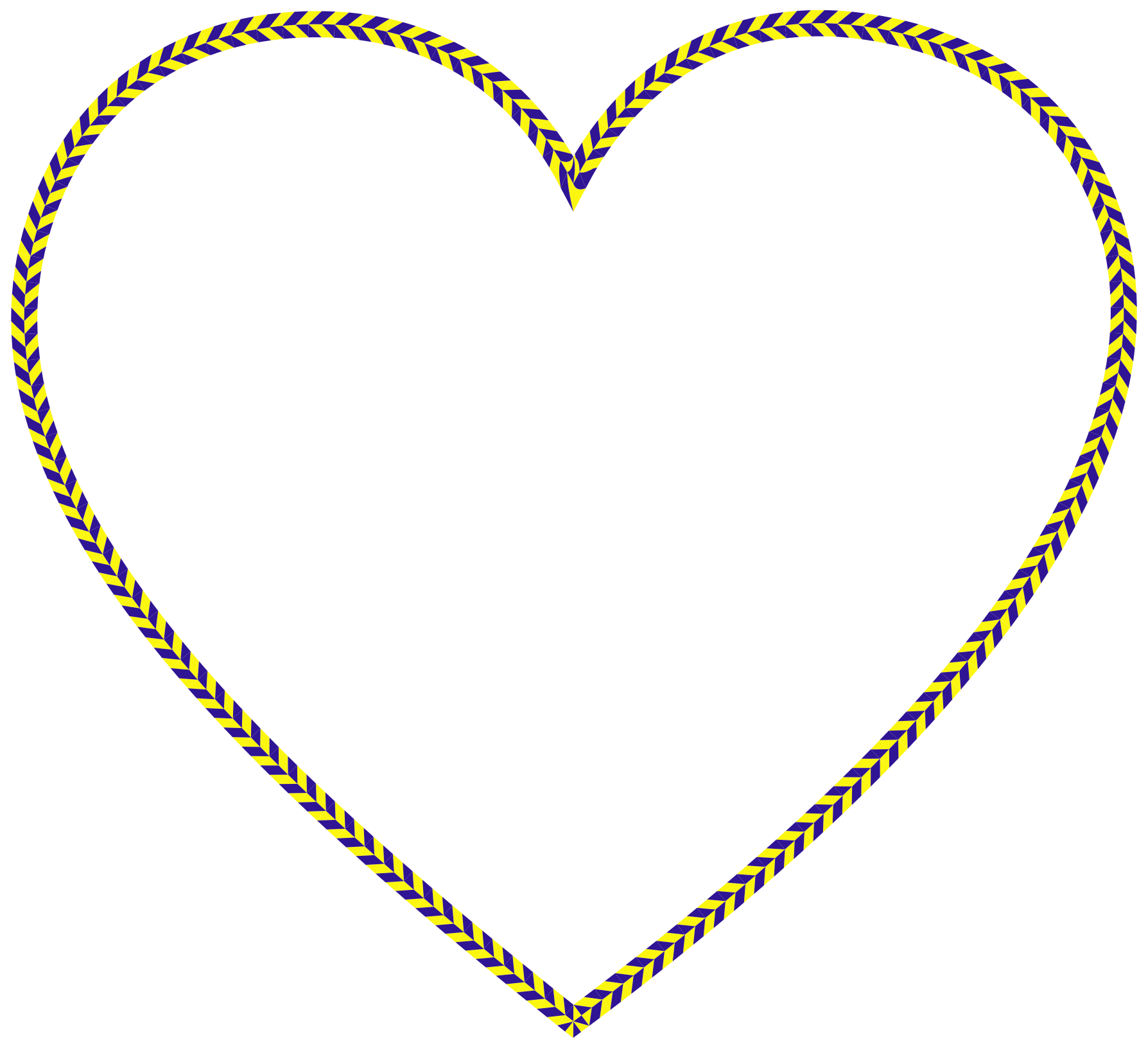 This features a heart-shaped design with yellow and black stripes. The heart is made up of two distinct sections, one larger section in the center and another smaller section on the left side. The yellow and black stripes create an interesting contrast against each other, making the heart visually appealing. This unique design could be used for various purposes such as a decorative element or even as a symbol for love and affection.