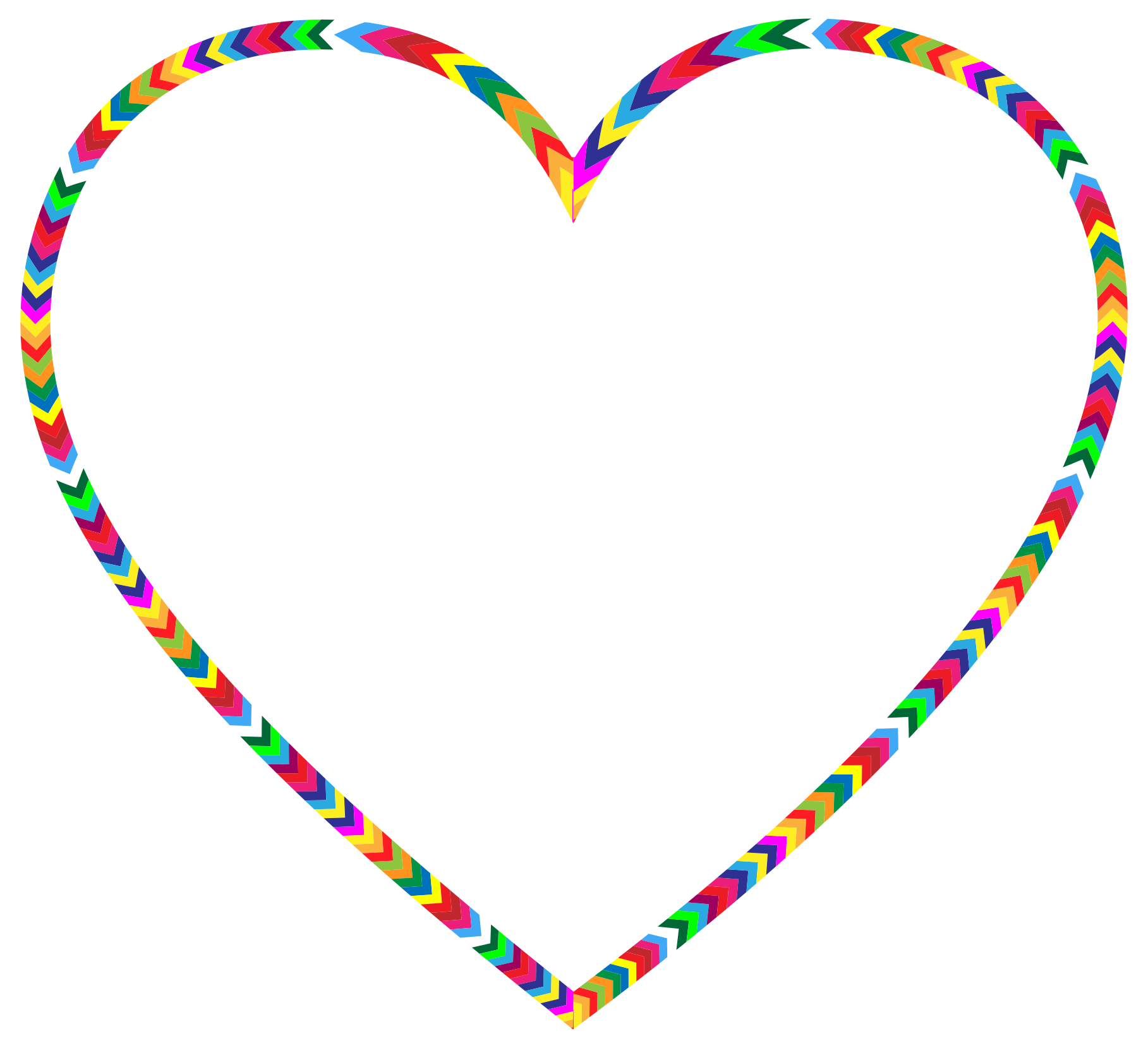 This features a heart with a colorful border made up of arrows. The heart is predominantly white, but the arrows are colored in various shades such as red, green, blue, yellow and orange. These colors create an eye-catching and vibrant appearance around the heart. The heart itself appears to be a simple design with no additional decorations or patterns, allowing the colorful border to stand out prominently.