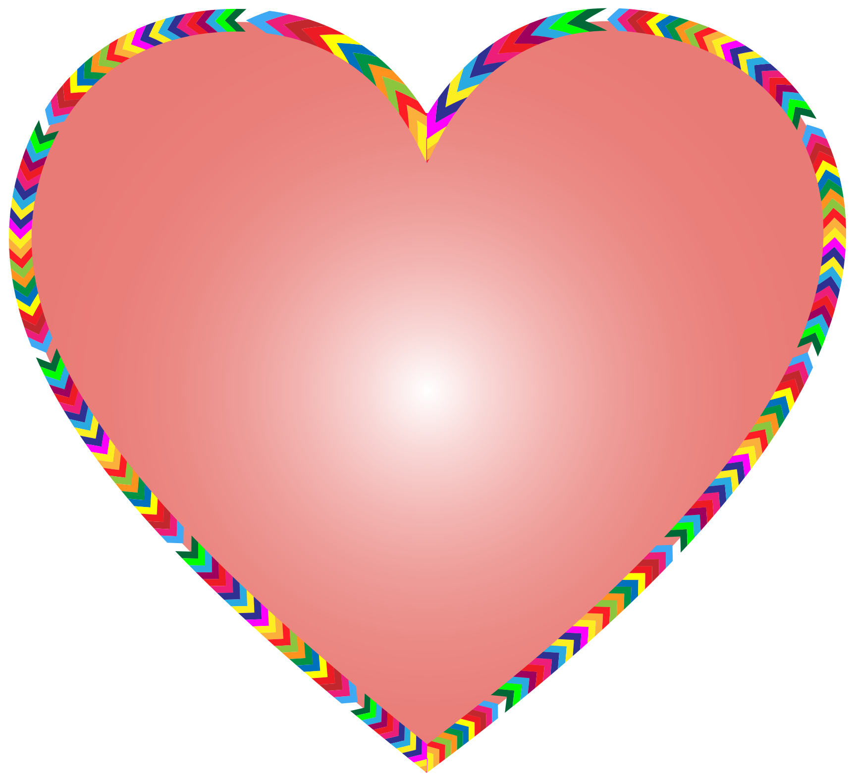 This features a large, colorful heart with a pink background. The heart is decorated with various colors and patterns, including red, green, blue, yellow, orange, and purple. These colors are arranged in different shapes and designs, creating an eye-catching and vibrant display. The heart's design gives it a unique and playful appearance, making it an interesting focal point for any setting or occasion.
