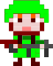 This features a pixelated cartoon character dressed in green and holding a gun. The character appears to be a young man with red hair, wearing a hat and a green outfit. He is standing confidently while holding the weapon, ready for action. The overall appearance of the character suggests that he might be an animated or digital version of a soldier.