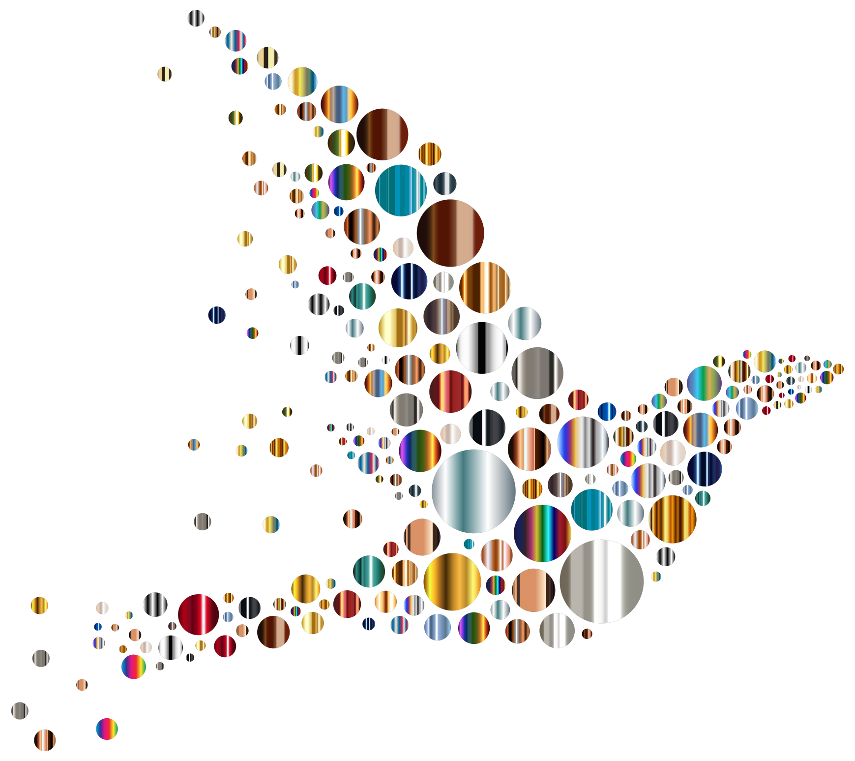 This features a bird with its wings spread, made up of various colors and shapes. These colors include red, yellow, blue, green, orange, and white. The bird is surrounded by numerous circles in different sizes and colors, creating an eye-catching and vibrant scene. The combination of the bird's wings and the colorful circles creates a visually striking image that captures attention.