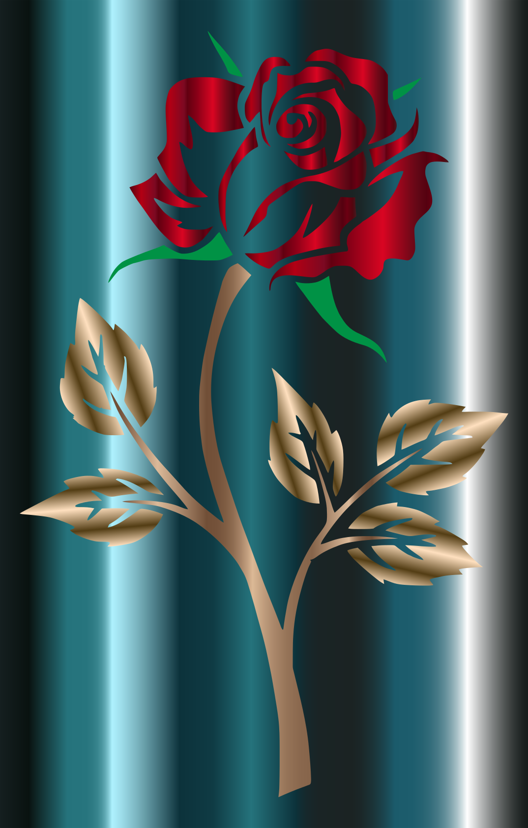 This features a single red rose with green leaves, placed in front of a blue background. The rose is the main focus of the scene and appears to be the only object present in the image. The combination of the red rose and the blue background creates an interesting contrast between the vibrant color of the rose and the cooler hue of the background. This simple yet striking composition can evoke various emotions or thoughts, depending on the viewer's interpretation.
