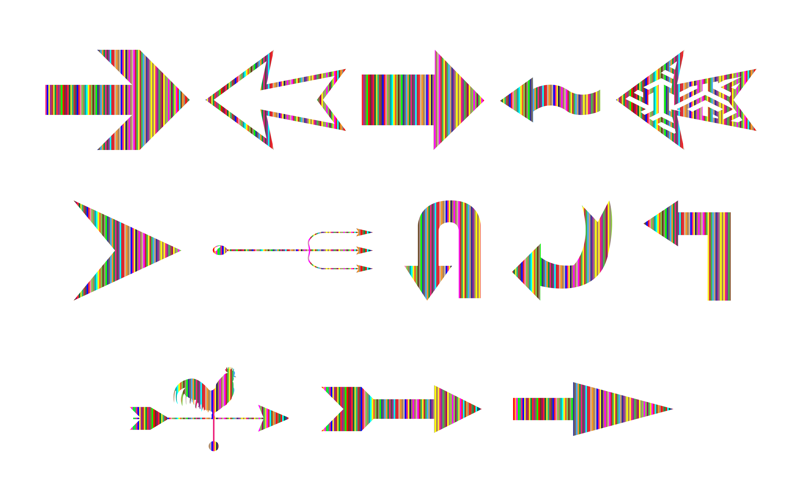 Tags: arrow, colorful, direction, down, left, pointing, right, striped, trident, up