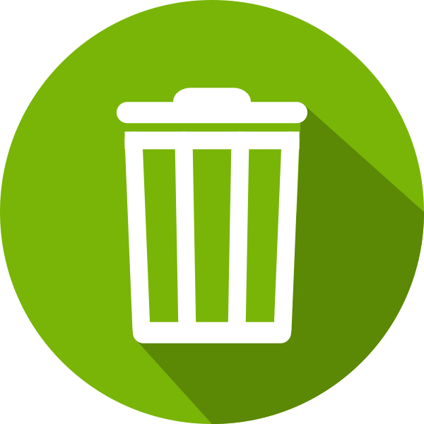 This features a green circle with an icon of a trash can inside it. This symbol is commonly used to represent waste disposal or recycling. The color of the circle and the trash can's icon are both bright, making them stand out against the background. The design of this symbol suggests that it could be used in various contexts related to waste management or environmental awareness.