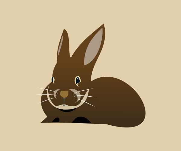 This features a brown rabbit with white whiskers and a big smile on its face. It is sitting down, possibly on the ground or a surface, and appears to be enjoying itself. The rabbit's whiskers are clearly visible, adding to its cute appearance. This illustration of a rabbit could be used for various purposes such as in children's books, educational materials, or even as an adorable decorative item.