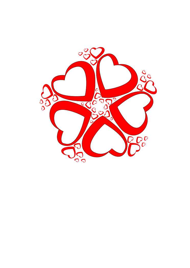 This features a large, red and white heart design with smaller hearts surrounding it. This unique pattern is created by combining the larger heart with five smaller hearts that are positioned around it. The overall effect gives an impression of a circle made up of these heart shapes. The combination of colors and intricate arrangement makes this design visually appealing and eye-catching.