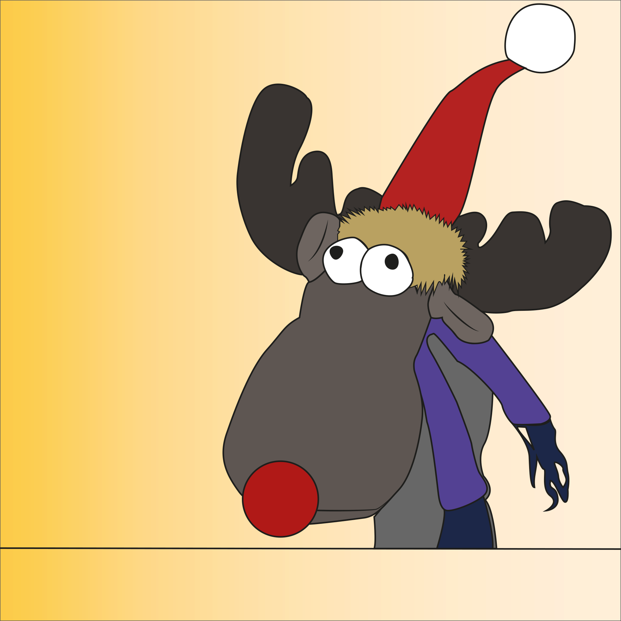 Tags: anthropomorphized animals, cartoon, colorful, reindeer, santa hat, anthropomorphized animal, reindeer cartoon