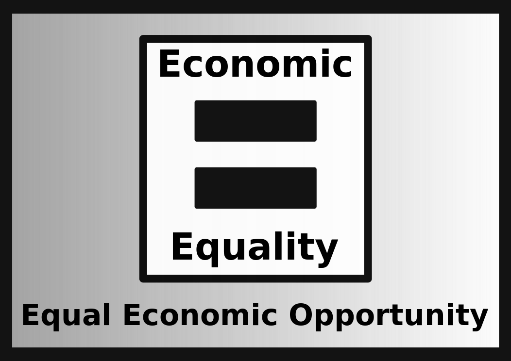 This features a square with the word "Economic Equality" written in bold letters. Below this, it reads "Equal Economic Opportunity." This message emphasizes the importance of equality and fairness in economic opportunities for all individuals. The phrase is displayed on a black background, making it stand out and be easily noticeable.