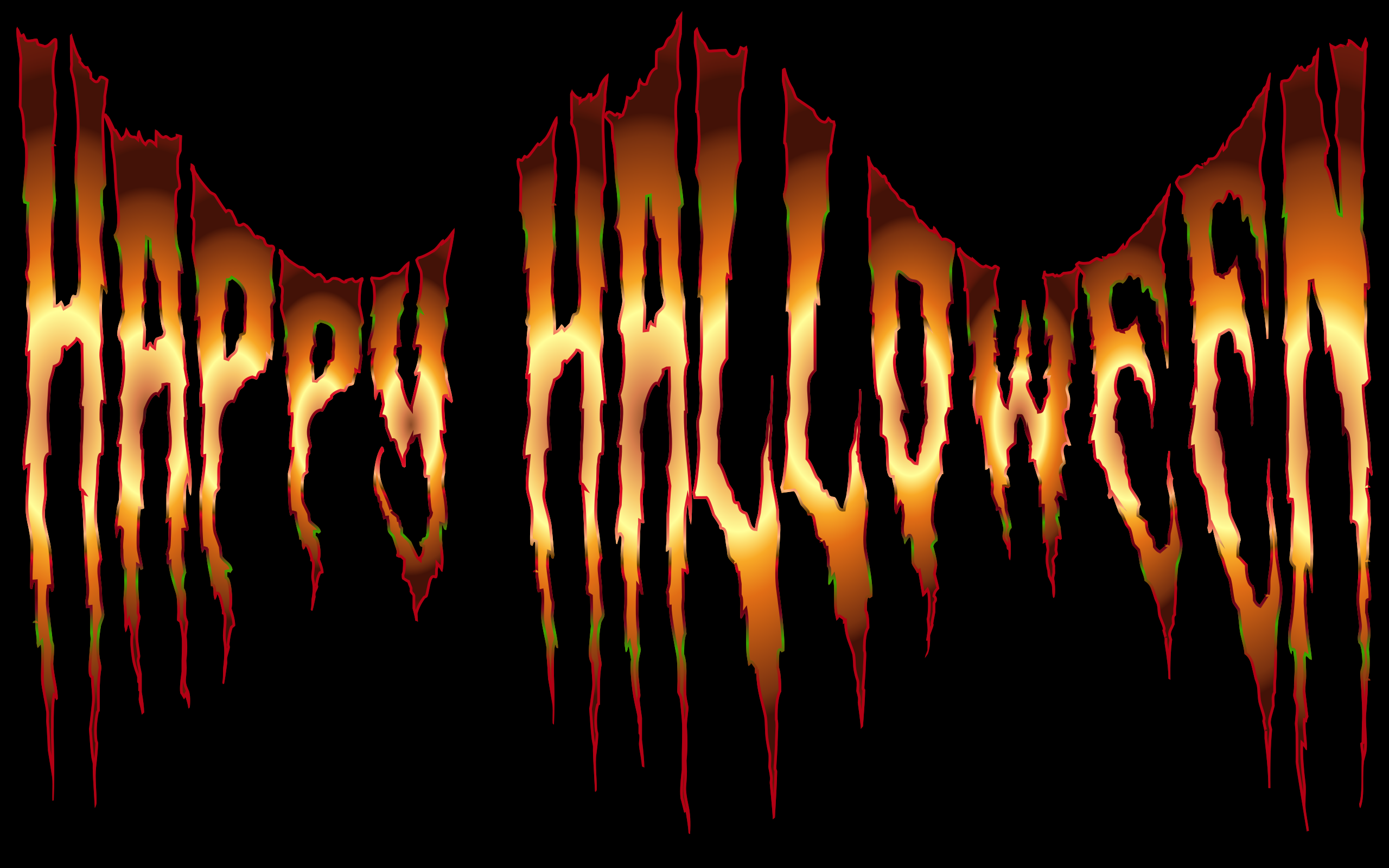 This features a black background with red and orange text that reads "Happy Halloween." The text is written in a bold, colorful font, making it stand out against the dark backdrop. This design could be used for various purposes such as posters, banners or even digital designs to celebrate the spooky holiday.