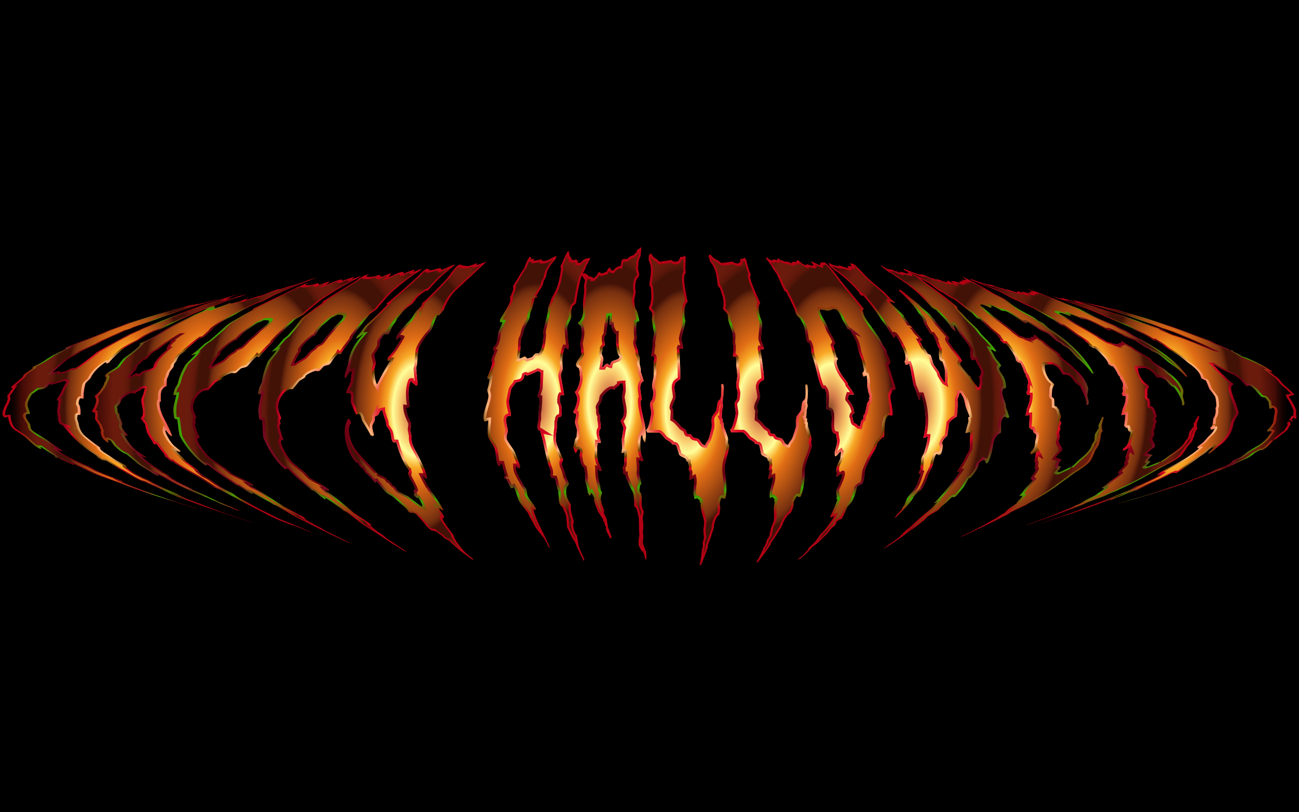 This features a black background with a colorful and eye-catching Halloween typography. The design is composed of orange, yellow, and red letters that spell out "Happy Halloween." The vibrant colors create an exciting and festive atmosphere, making it perfect for various Halloween-themed events or decorations. The bold font and striking color combination make this design stand out and easily captivate the viewer's attention.