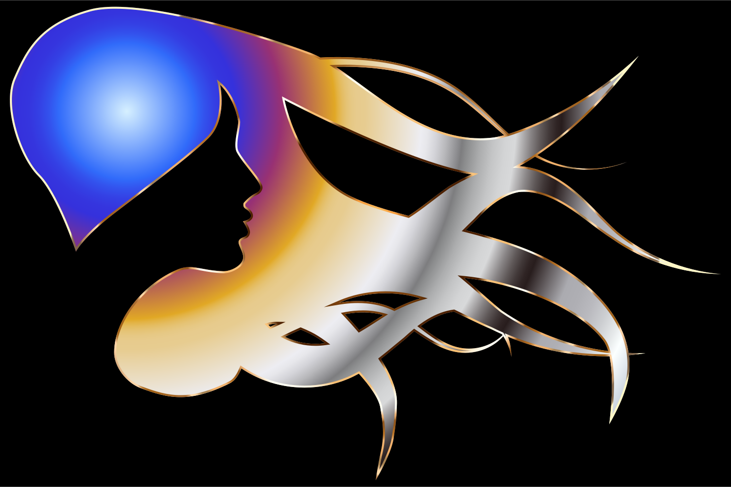 Tags: abstract, art, chromatic, colorful, female, flowing, girl, hair, metallic, prismatic, shiny, woman, artistic, blue, yellow, silver, black and white