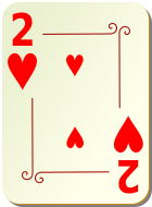 This features a red and white deck of cards, with the card number 2 prominently displayed. The card is adorned with hearts on it, giving it an ornamental appearance. The card is placed in the center of the scene, drawing attention to its unique design. This particular card may be used for various purposes such as playing games or adding a decorative touch to a room.
