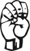 This features a black and white hand gesture, which is commonly known as the "fist" or "peace sign." This symbol is often used to express solidarity, unity, or peace. In this case, it appears that the hand is making an "E" shape, possibly indicating a connection between the fist gesture and the letter E in sign language. The image itself has a black background, which further emphasizes the contrasting colors of the hand gesture.
