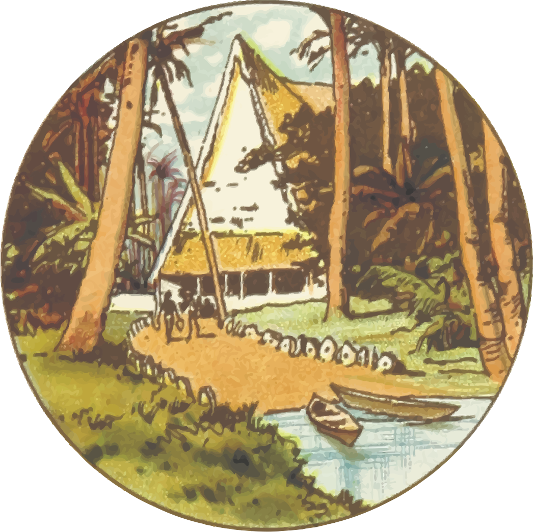 Tags: palm tree, house, boat, water, hut african