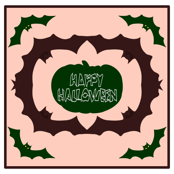This features a square sign with a pumpkin in the center, surrounded by four bats. The pumpkin is green and has the words "Happy Halloween" written on it. The sign appears to be made of paper or cardstock, giving it a festive appearance. The design of the sign suggests that it could be used as decoration for a Halloween celebration or event.