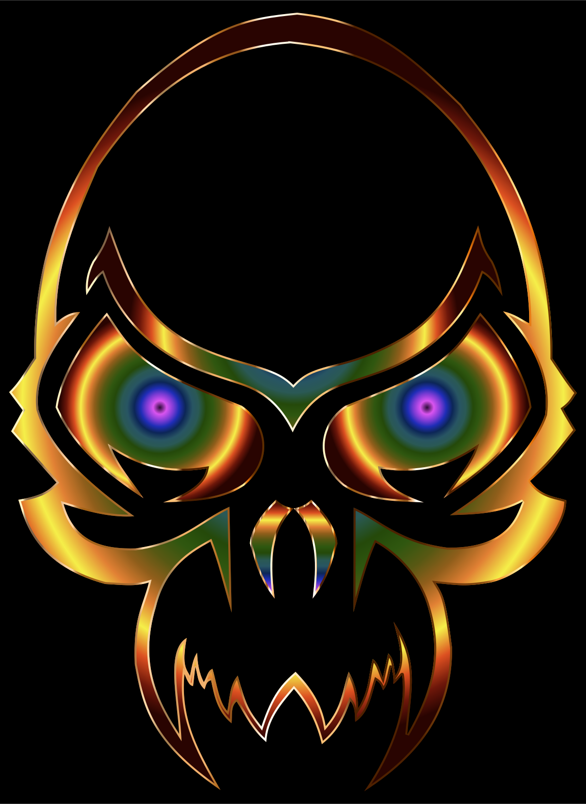 This features a unique and eye-catching skull design with vibrant colors. The skull is predominantly yellow, but it also has green accents that add depth to the overall appearance. The eyes of the skull are particularly striking, as they have different color halos surrounding them, creating an intriguing visual effect. This artistic and creative design makes for a captivating piece that can be appreciated by those who enjoy bold and unconventional imagery.