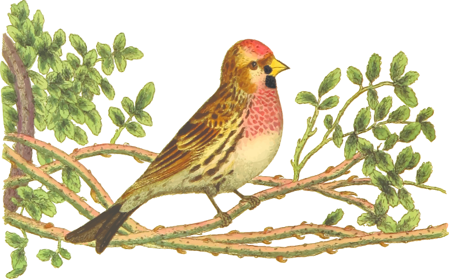 This is a completely free image Redpoll bird on branch that you can download, post, and use for any purpose.