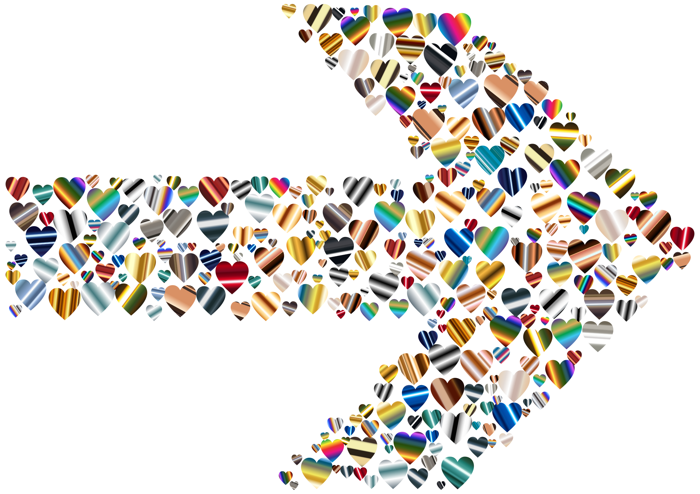 This features a white arrow with various colored hearts and other shapes surrounding it. These colorful elements are scattered throughout the scene, creating an eye-catching and vibrant display. The hearts come in different sizes and colors, adding depth to the overall composition of the picture. This artistic arrangement showcases creativity and attention to detail, making it a visually appealing piece.