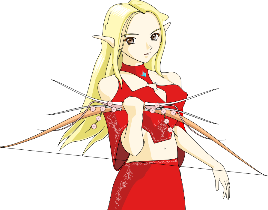 Tags: 9va-win, 9vae, anime, archer, cartoon, colour, comic characters, elf, elven, fantasy, girl, red, semi-realistic people, smil, woman, archer elven
