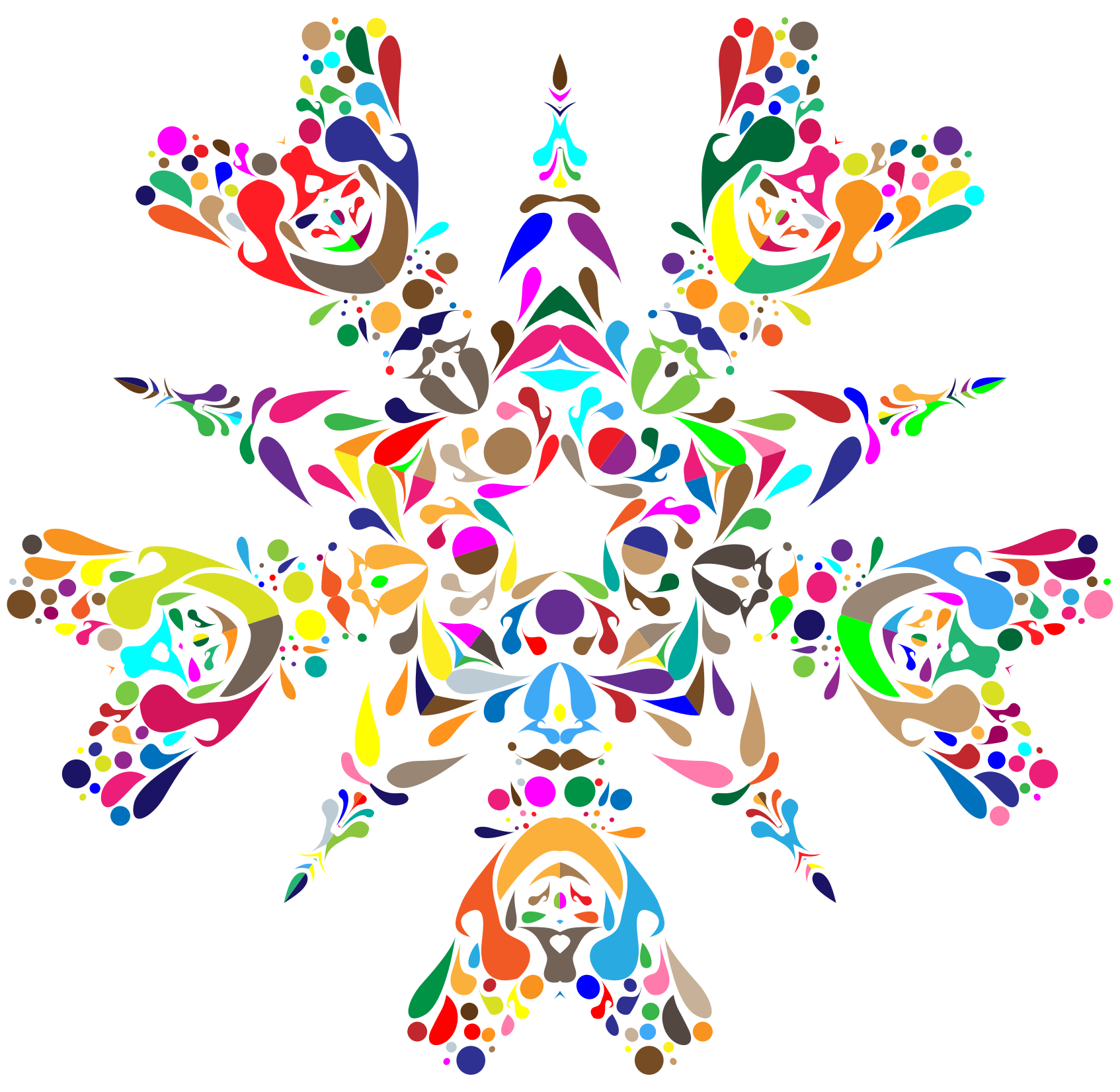 This features a colorful and intricate design of a snowflake, which is made up of various shapes and colors. The snowflake has a central point surrounded by numerous smaller snowflakes, creating an eye-catching pattern. The different colored snowflakes are arranged in such a way that they create a visually appealing and vibrant display. This design could be used for decorative purposes or as part of a larger artwork, showcasing the beauty of nature's patterns.
