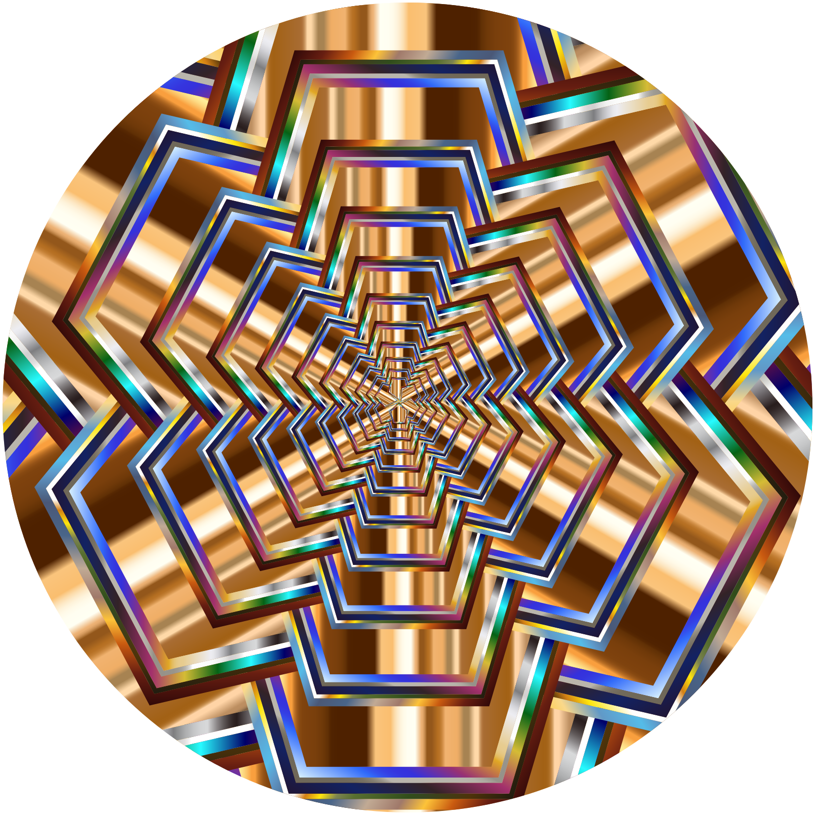 This features a circular design with an intricate pattern of interconnected circles. Each circle is filled with different colors, creating a visually striking and complex composition. The various shades of color are distributed throughout the entire design, making it appear vibrant and lively. This artistic piece could be used as a decorative element or even as a unique wallpaper pattern to add visual interest to any space.