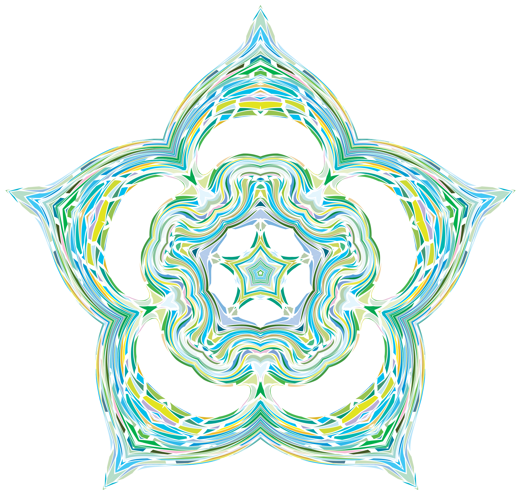 This features a large, colorful geometric design that resembles a flower or a star. It is composed of various shapes and colors, including blue, green, yellow, and white. The design appears to be made up of multiple layers, creating an intricate and visually appealing pattern. The overall effect is one of beauty and complexity, showcasing the artist's skill in crafting a captivating piece of artwork.