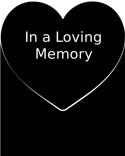 This is a black and white heart-shaped picture with the words "In A Loving Memory" written in the center. The heart shape is filled with a darker shade of black, giving it an elegant appearance. This design could be used for various purposes such as memorials or tributes to loved ones who have passed away.