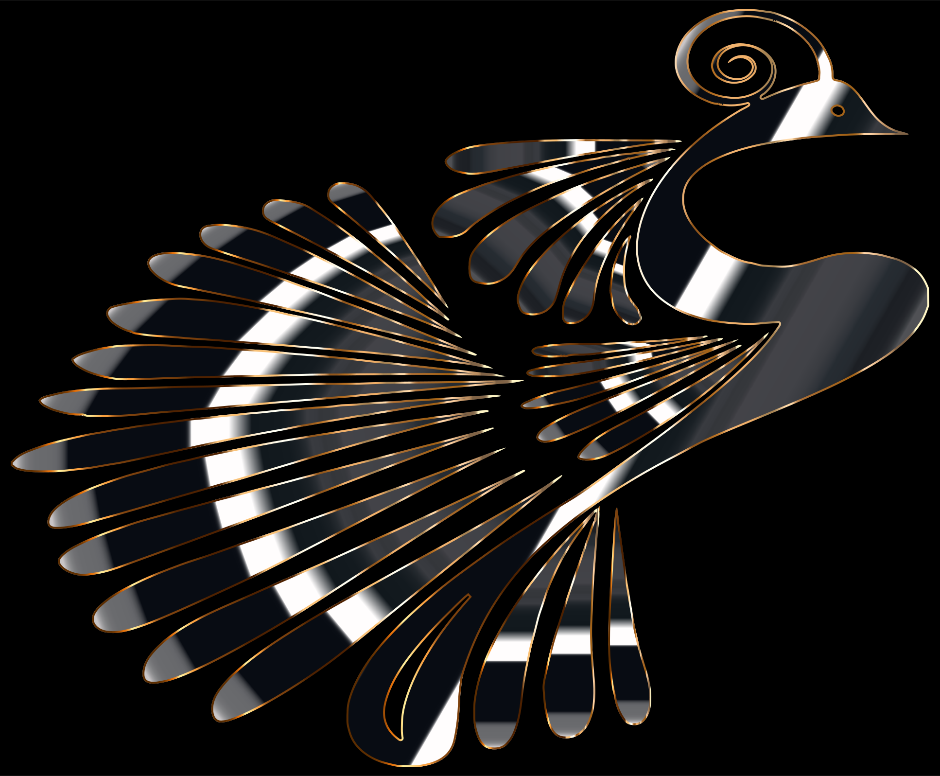 This features a unique and intricate design of a bird, possibly a peacock or an eagle. The bird is depicted with its wings spread wide, showcasing the beauty of its feathers. The wings are adorned with a pattern that resembles a fan, adding to the overall elegance of the image. The bird's head is turned slightly to the side, giving it an interesting and dynamic appearance. This artistic representation of a bird in flight creates a captivating visual experience for viewers.
