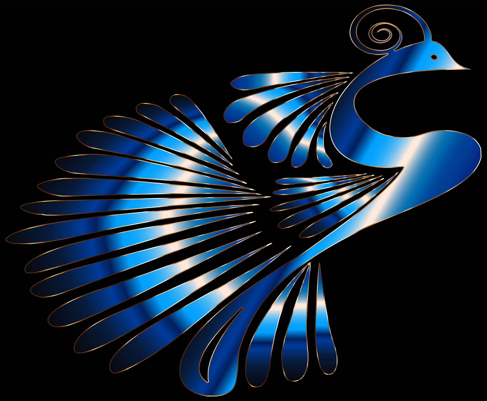 This features a blue bird with an open beak, possibly a swan or a peacock. It is surrounded by multiple wings that are also blue in color. These wings appear to be made of metal and have a shiny appearance. The bird's body is positioned towards the center of the image, while its wings extend outwards on all sides. The overall composition creates an artistic and visually appealing scene.