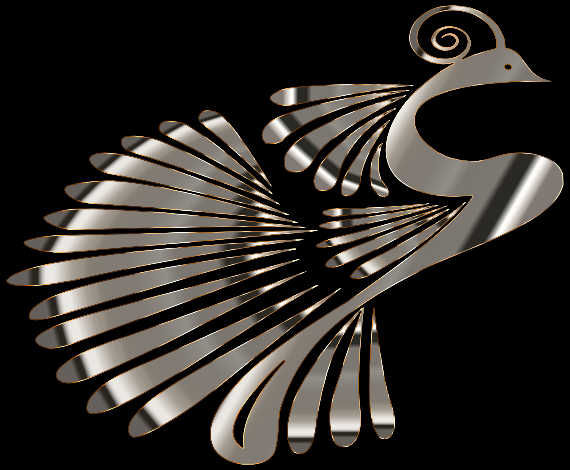 This features a unique and intricate design of a bird, possibly a swan or duck. The bird is depicted with its wings spread wide, giving the impression that it's flying through the air. The bird's wings are adorned with an ornate pattern, adding to the overall beauty of the image. The bird appears to be made from metal and has a shiny appearance, which further enhances its visual appeal. This artistic piece could serve as a decorative item or a conversation starter for those who appreciate its craftsmanship and design.