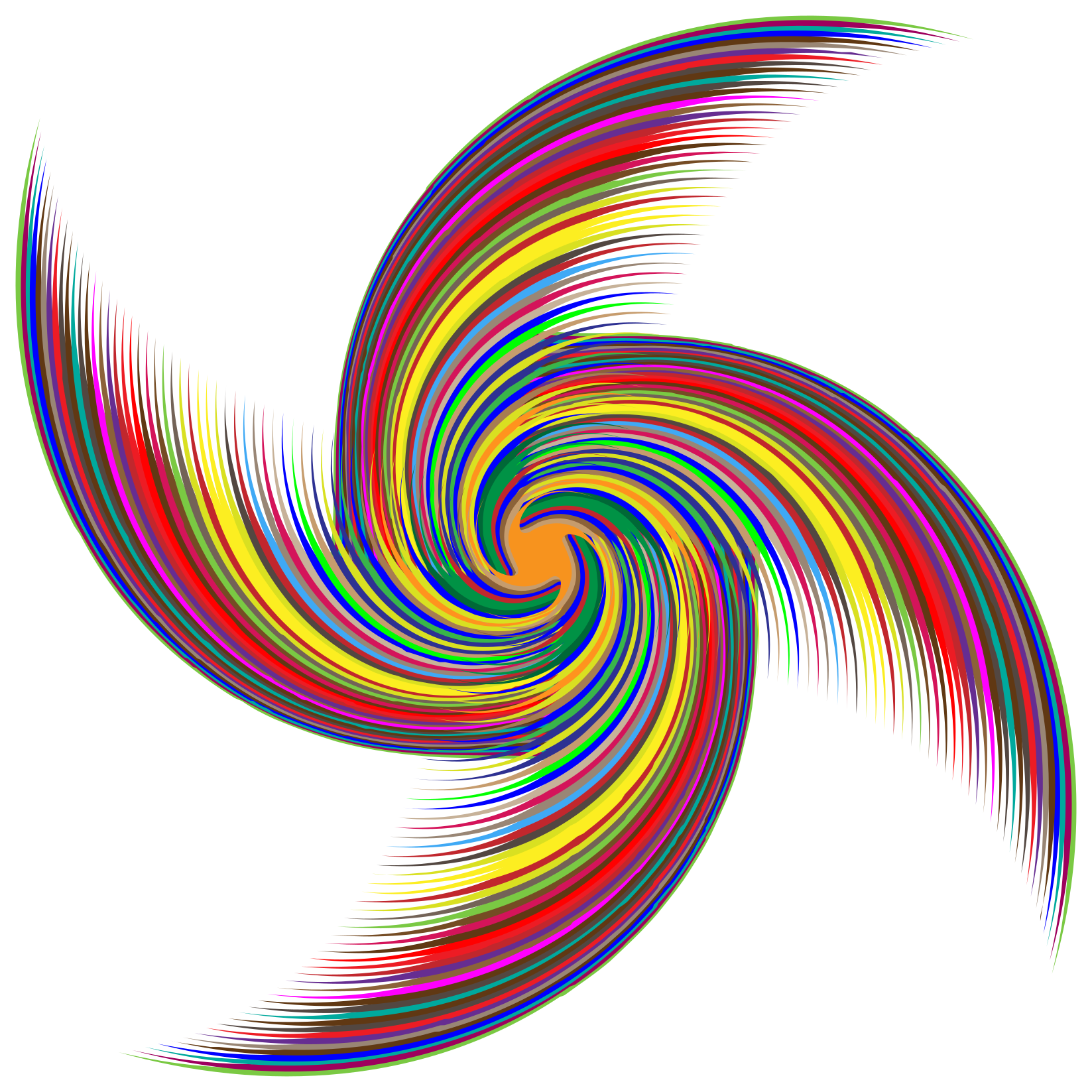 This features a colorful, swirling design that resembles a kaleidoscope. This artistic piece is composed of various colors, including red, yellow, blue, green, and orange. The vibrant colors create an eye-catching pattern that draws the viewer's attention. The design appears to be a mix between a spiral and a circle, with the colors intertwining in a visually appealing manner. This artwork could be used as a decorative piece or even as a wallpaper for those who appreciate its unique and lively appearance.