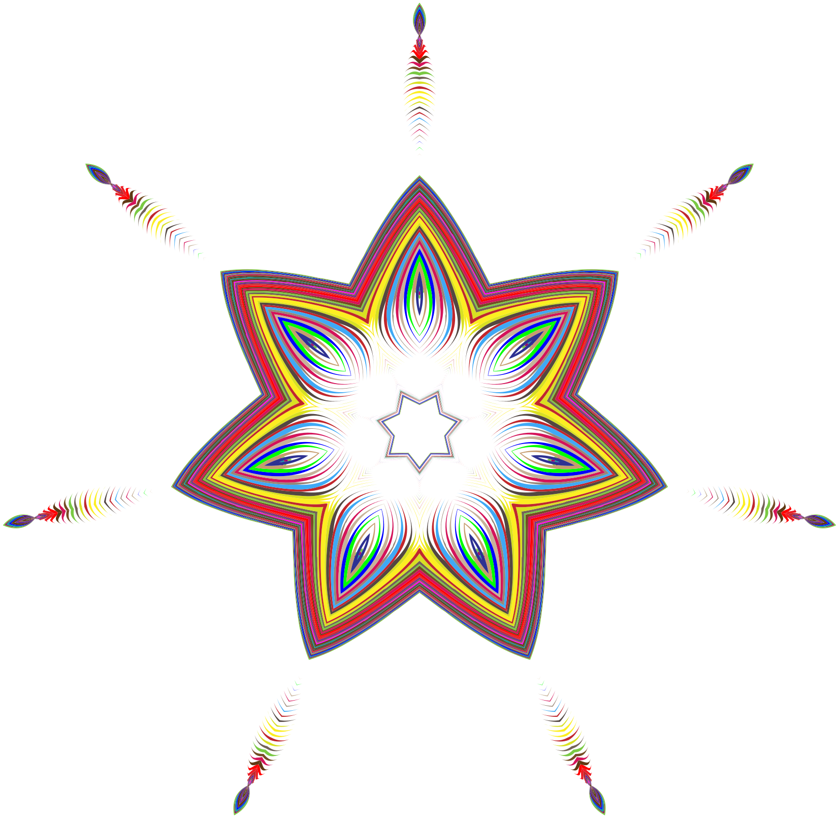 This features a colorful and intricate design, resembling a star or a flower. It is composed of various shapes and colors, including red, yellow, green, blue, and white. The pattern appears to be a combination of geometric shapes and abstract designs, creating an eye-catching and vibrant visual effect. The image seems to have been created using computer software, as it has a digital appearance with a slightly blurred quality. Overall, the design is both visually appealing and unique, showcasing the artist's creativity and skill in combining different elements into a cohesive piece of art.