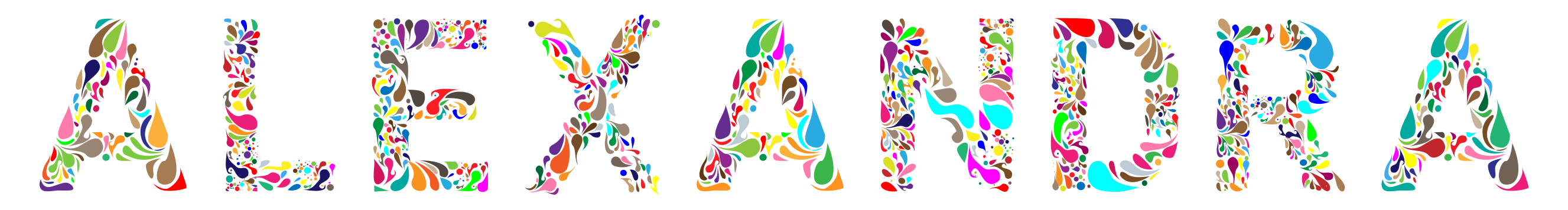 This is a close-up of the word "Alexandra" written in a colorful and artistic manner. The letters are arranged in a visually appealing way, with each letter being colored differently to create an eye-catching design. This creative display of text gives the impression that it could be part of a brand or advertisement campaign for someone named Alexandra. The vibrant colors and unique arrangement make this image stand out as a piece of artistic typography.