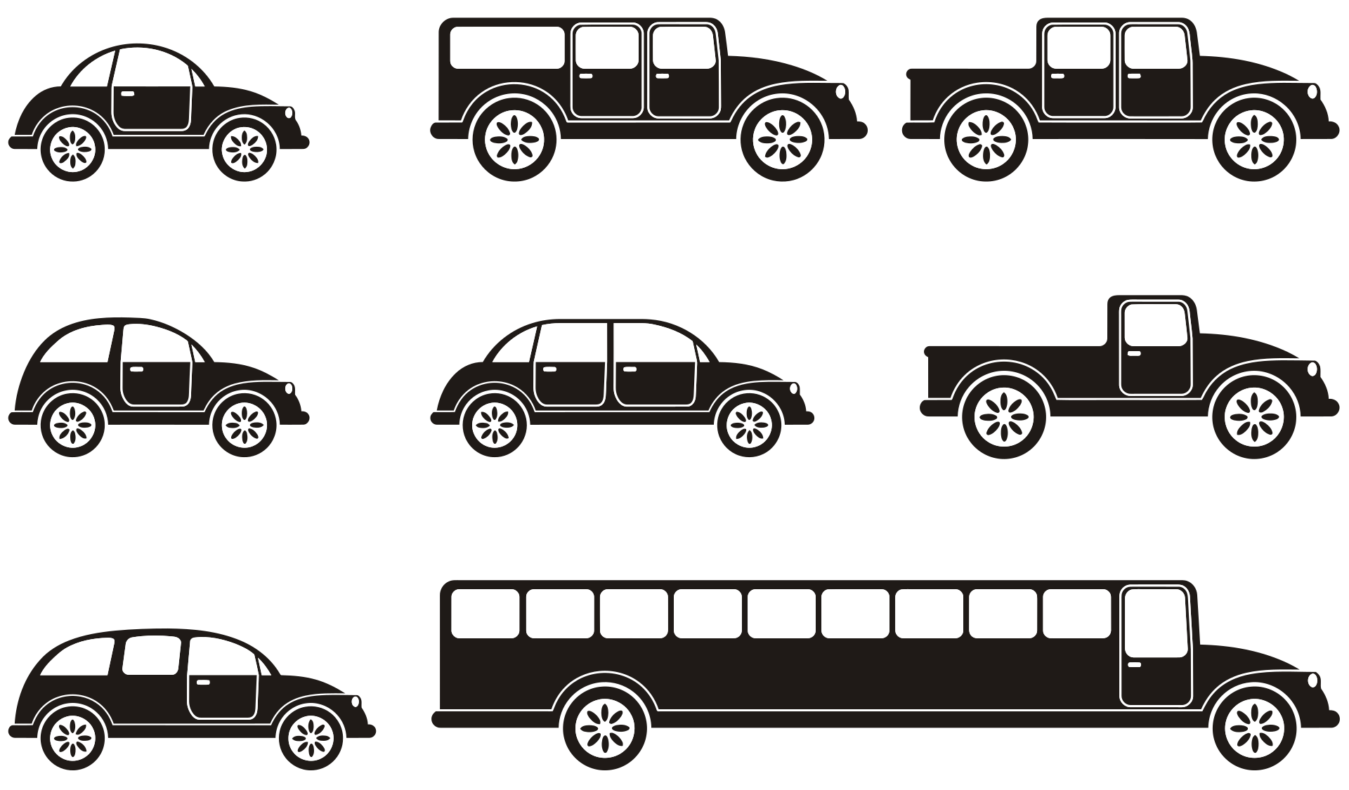 This features a collection of various vehicles, including cars and trucks. There are six cars in total, each with different designs and sizes. They are arranged in a row, showcasing the diversity of their appearances. Additionally, there are three trucks displayed among the vehicles, adding to the variety of transportation options seen in this image. The combination of cars and trucks creates an interesting visual representation of different types of vehicles.