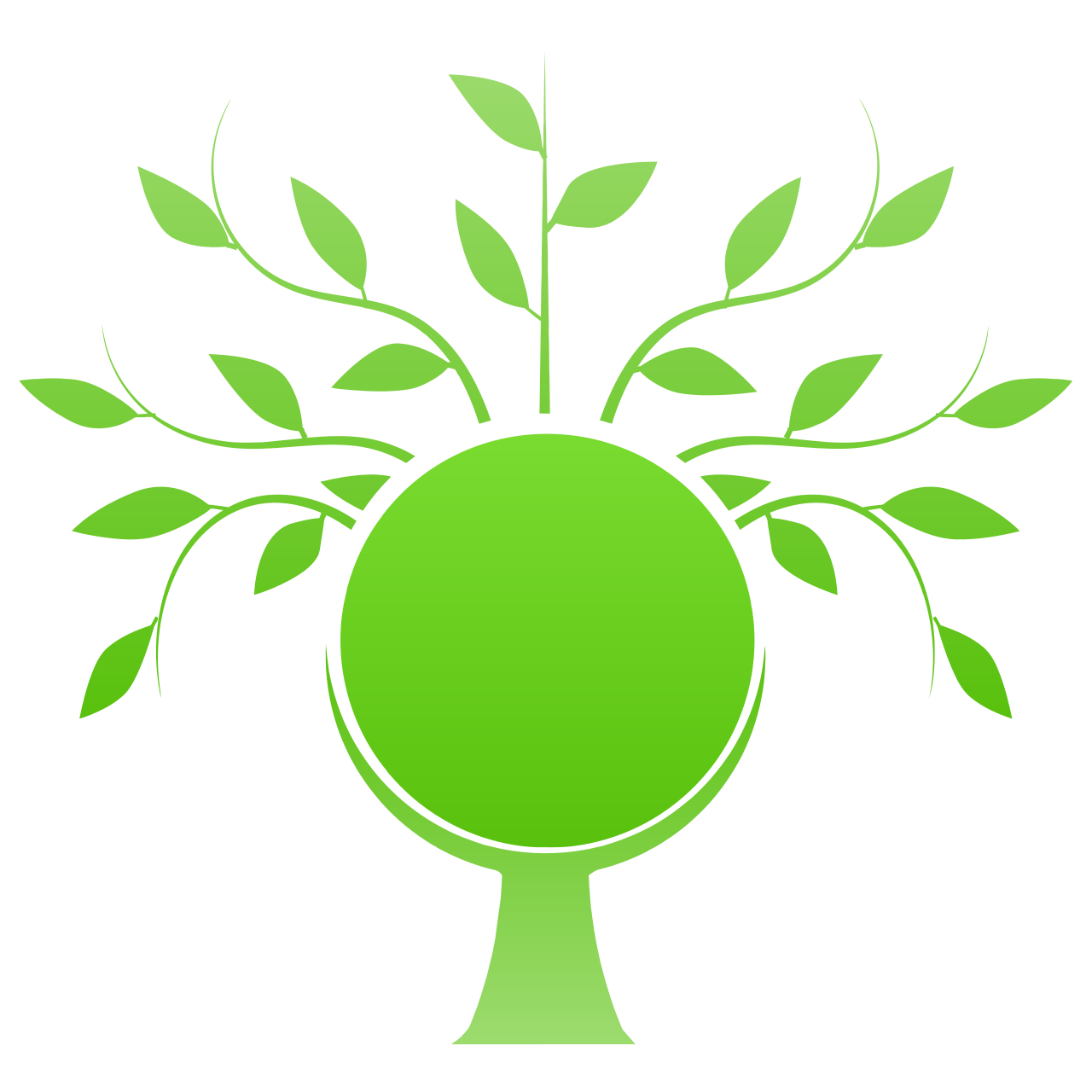 This features a green tree with leaves and branches, creating an overall lush appearance. The tree is depicted in various stages of growth, from the roots to the topmost leaves. The leaves are spread out across different parts of the tree, giving it a full and healthy look. This illustration showcases the natural beauty of a growing plant, highlighting its development from the ground up.