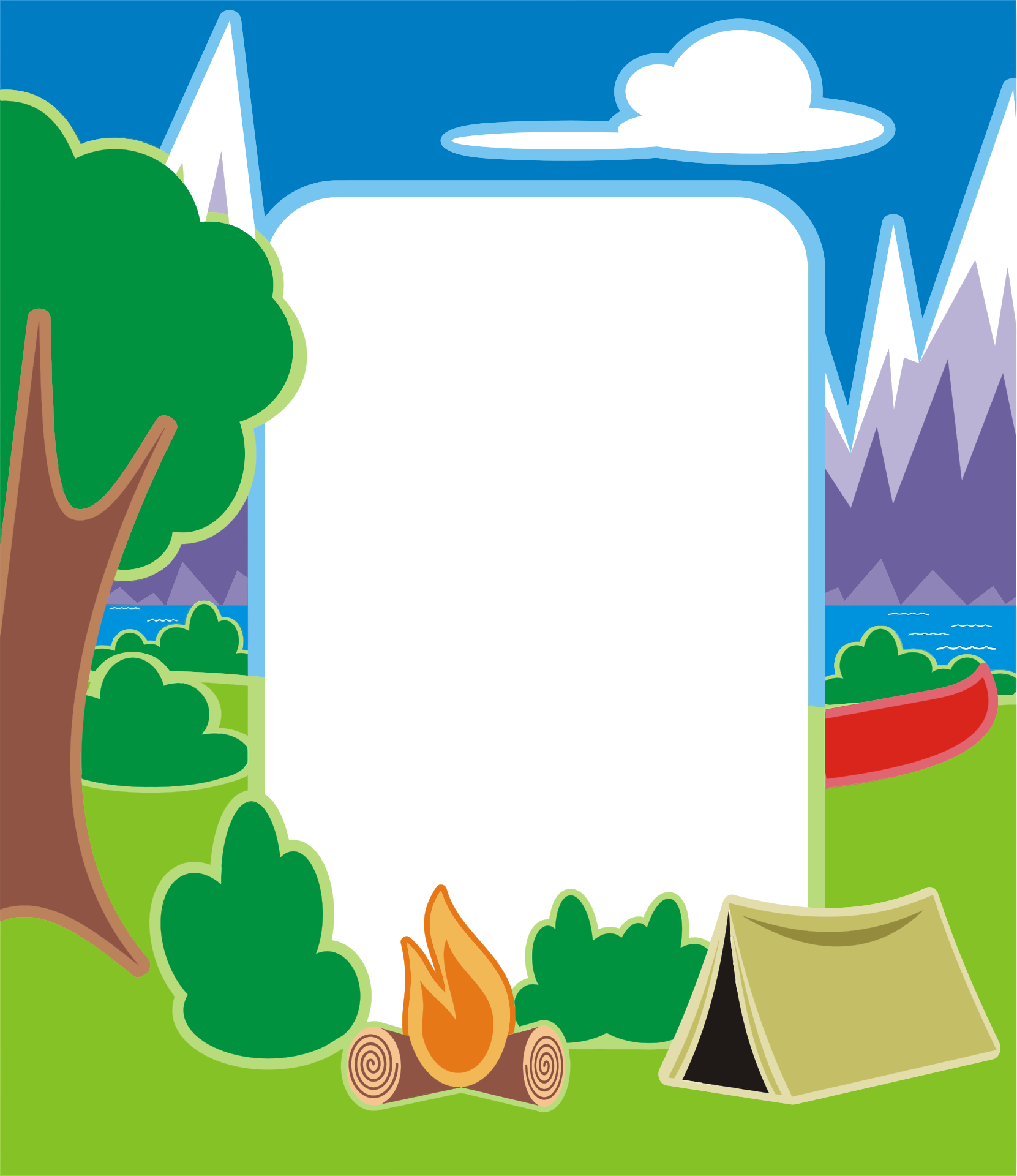 This features a picturesque scene of a camping area with a tent and a fire pit. A white sign is placed in the foreground, providing information about the location or rules for visitors. In addition to the main elements, there are trees surrounding the campsite, adding to the natural ambiance. The overall setting appears to be an inviting space for outdoor enthusiasts to enjoy a camping experience.