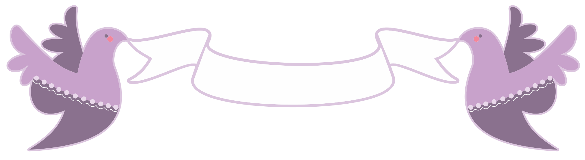 This features a pair of birds, one on the left and another on the right side, with their beaks touching each other. They are positioned above a white ribbon that spans across the entire frame. The scene appears to be set in a pink background, giving it an elegant and romantic atmosphere.