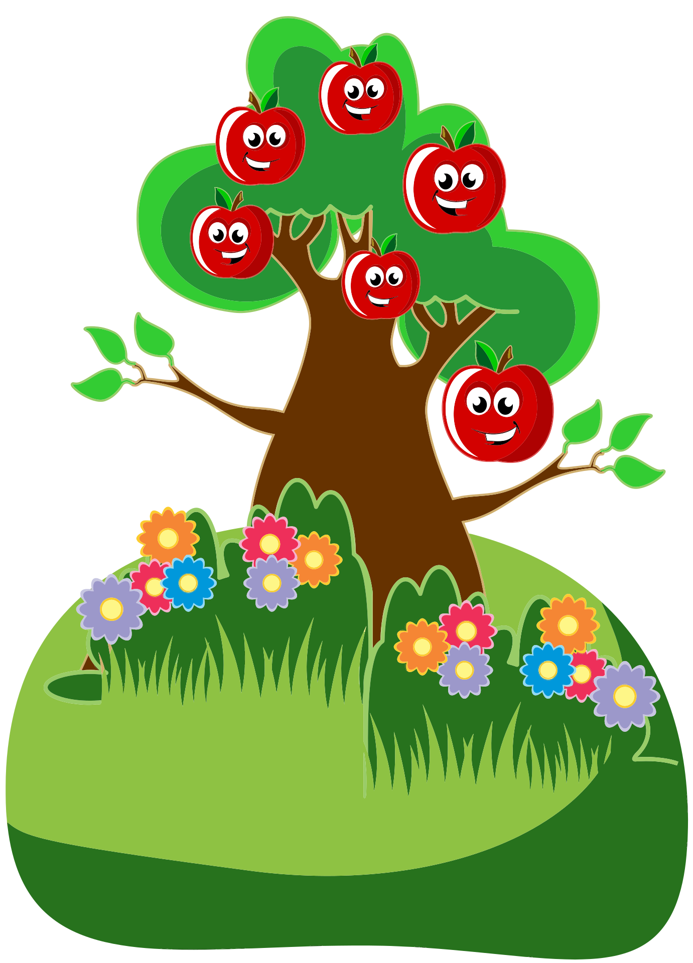 Tags: anthropomorphic, apple, colorful, flower, fruit, green, happy, landscape, tree, cartoon