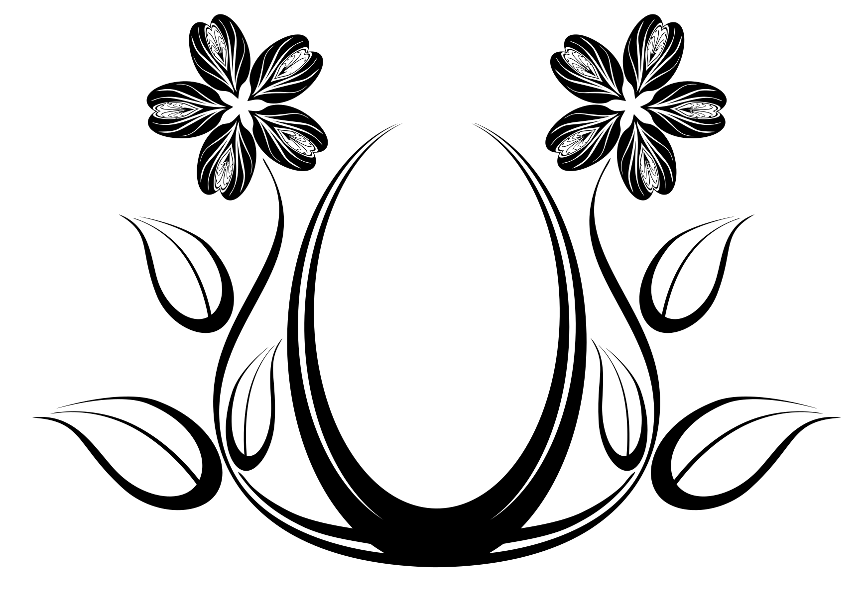 This features a black and white design of two flowers, one on the left side and another on the right. These flowers are placed within an oval shape, creating a visually appealing composition. The oval is filled with a contrasting color, which adds depth to the overall design. This artistic piece could be used as a decorative element or even as a logo for various purposes.
