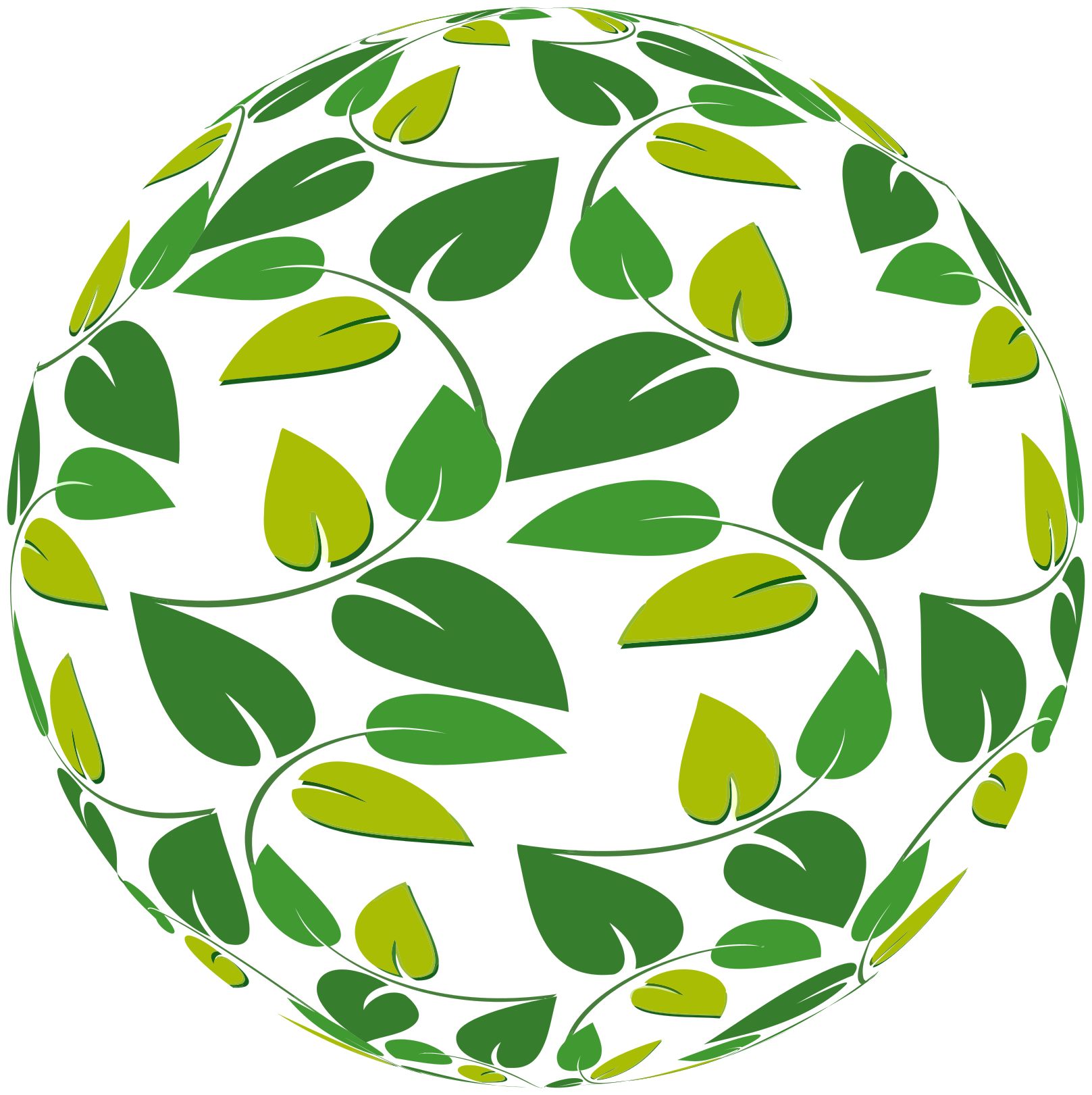 This features a round, green ball with a leaf pattern on it. The leaves are arranged in such a way that they form a circle around the ball, creating an interesting and unique design. The leaves vary in size and shape, adding depth to the overall composition of the image. This artistic representation of a sphere made out of leaves creates a visually appealing and creative piece of artwork.