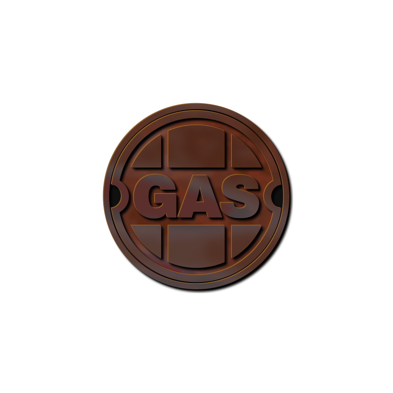 This features a brown circular object with the word "GAS" written on it. It appears to be an emblem or logo for a gas valve vault, possibly used in industrial settings. The design of the emblem is simple and straightforward, making it easy to recognize as representing the gas industry.