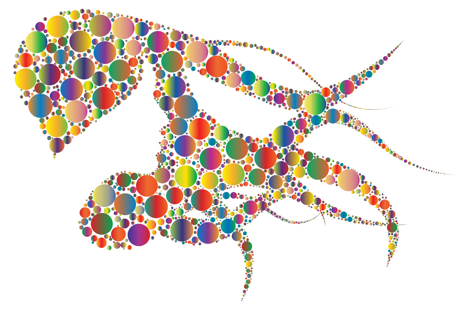 This features a unique and colorful design of an insect or sea creature, possibly a crab. It is composed of various circles in different colors that create the intricate pattern on its body. The circles are scattered all over the image, with some placed closer to the center while others are positioned towards the edges. This artistic representation showcases the beauty and creativity behind the design, making it an interesting visual piece.