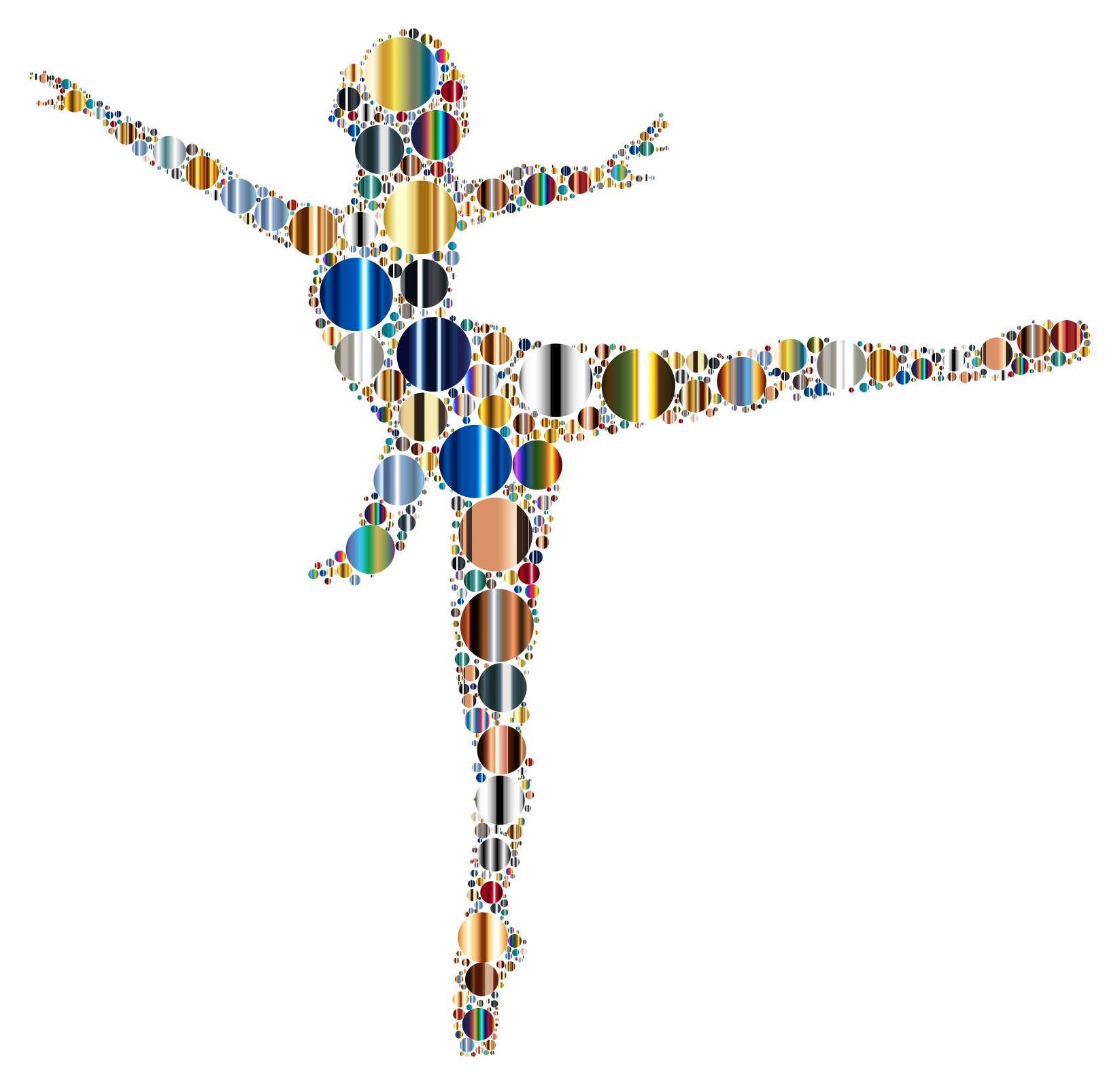 This features a silhouette of a ballerina, who is skillfully dancing on stage. This artistic representation of the dancer is made up of various colored circles that are arranged in such a way as to create an intricate and visually appealing pattern. The colors used for this design are vibrant and eye-catching, making it an attractive piece of artwork. The overall effect is one of movement and grace, capturing the essence of dance through its unique visual representation.