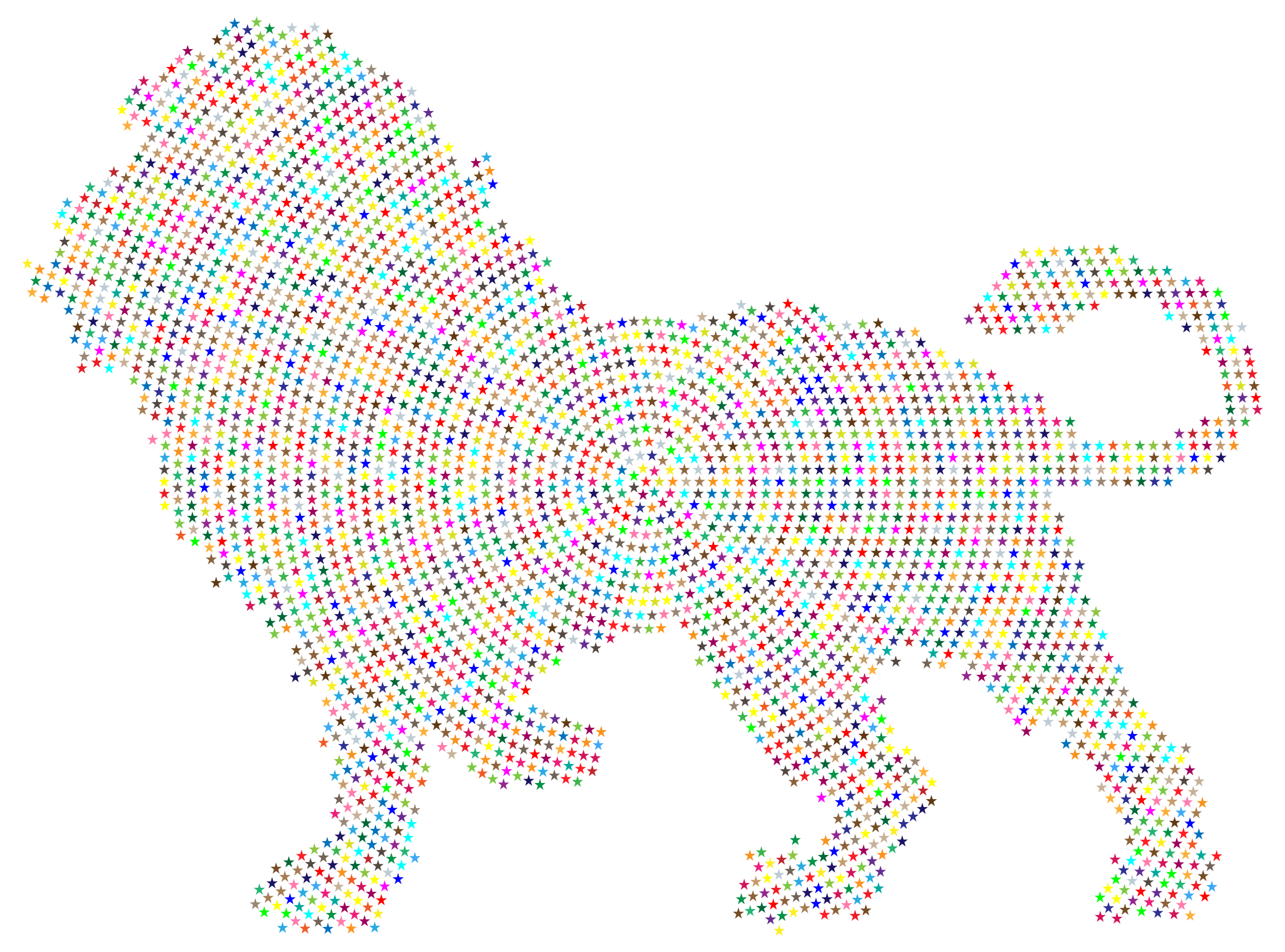 This features a lion's silhouette made out of small colorful dots. It is an artistic representation of the majestic animal, with its body and head prominently visible in the scene. The lion appears to be facing the left side of the image, giving it a sense of depth and dimension. The use of dots instead of solid lines adds a unique visual effect that makes the lion's outline stand out against the background. This creative representation of the lion can evoke feelings of curiosity and admiration for its natural beauty.