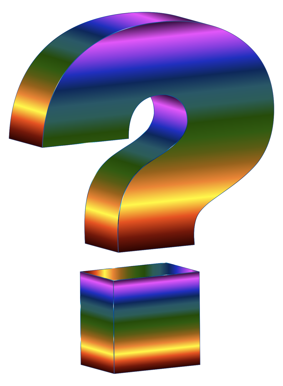 Tags: 3d, abstract, art, colorful, prismatic, punctuation, question mark, rainbow, text, thinking skills, type, typography